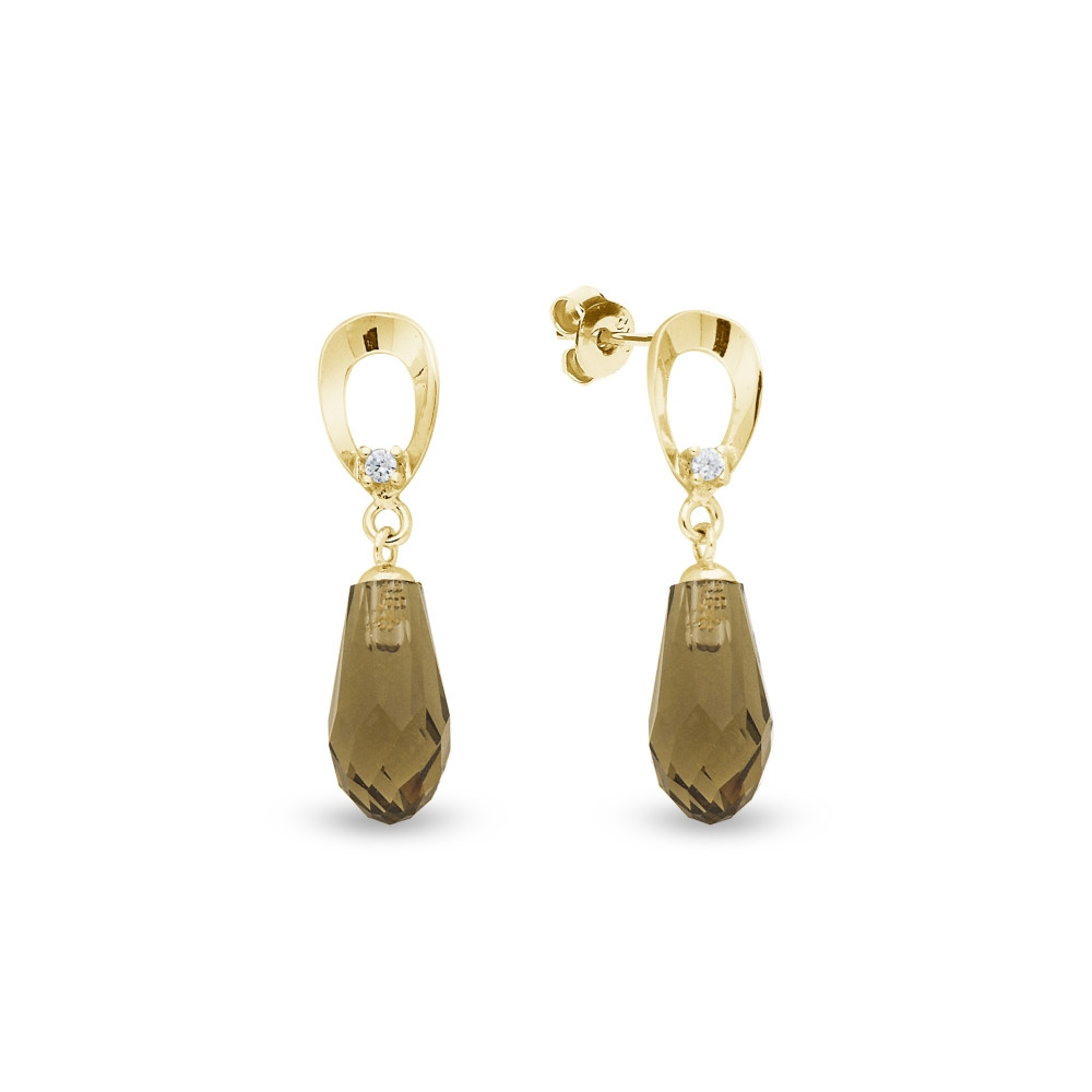 Kolczyki wykonane z pozłacanego srebra próby 925 oraz austriackich kryształów w kolorze Smoky Quartz.
