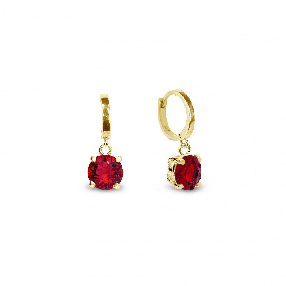 Kolczyki wykonane z pozłacanego srebra próby 925 oraz austriackich kryształów w kolorze Scarlet.Wielkość kryształów: 0,8 cm.
