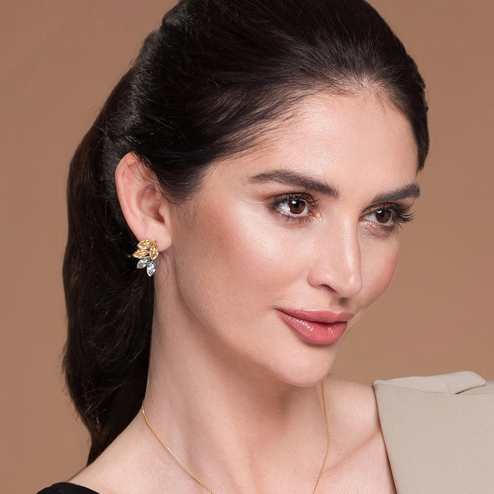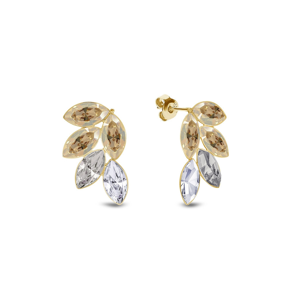 Kolczyki wykonane z pozłacanego srebra próby 925 oraz austriackich kryształów w kolorze Golden Shadow i Crystal.