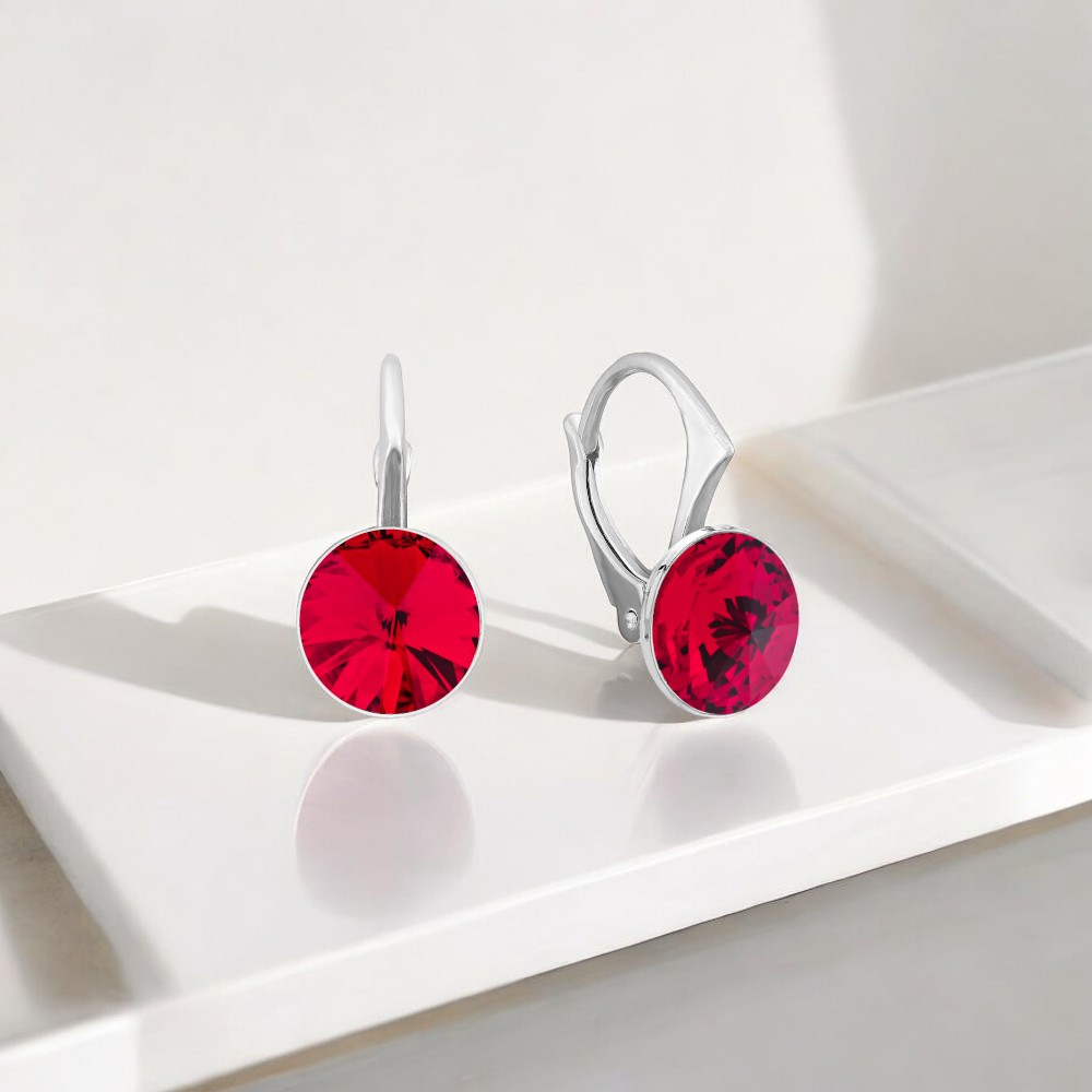 Te srebrne kolczyki z intensywnie czerwonymi kryształami są wyjątkowo eleganckie i wyraziste, dodając każdej stylizacji klasy, dramatyzmu i luksusu, niezależnie od okazji.