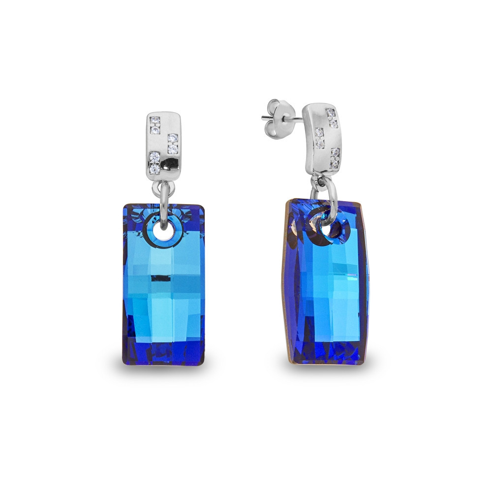 Kolczyki wykonane ze srebra próby 925 oraz austriackich kryształów w kolorze Bermuda Blue.