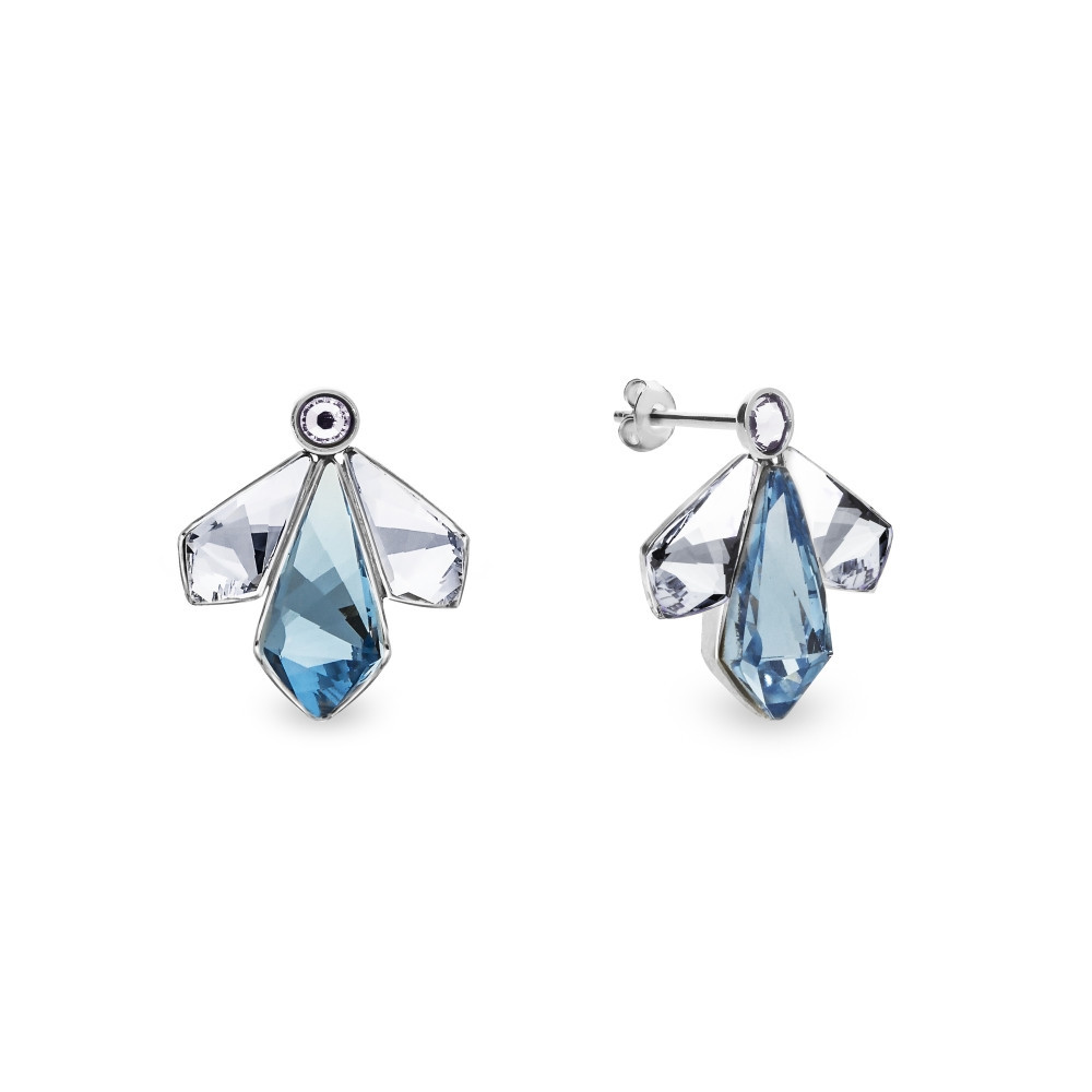 Kolczyki wykonane z niebieskiej Alcantary® i srebra próby 925 oraz ekskluzywnych kryształów crystals w kolorach Aquamarine i Crystal.Długość kolczyków: 8 cm. Szerokość kolczyków: 3.5 cm.