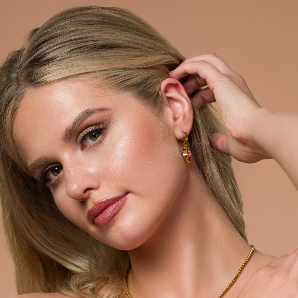 Kolczyki MIRAGE ze stali nierdzewnej pozłacanej z różowym kryształem | SPARK