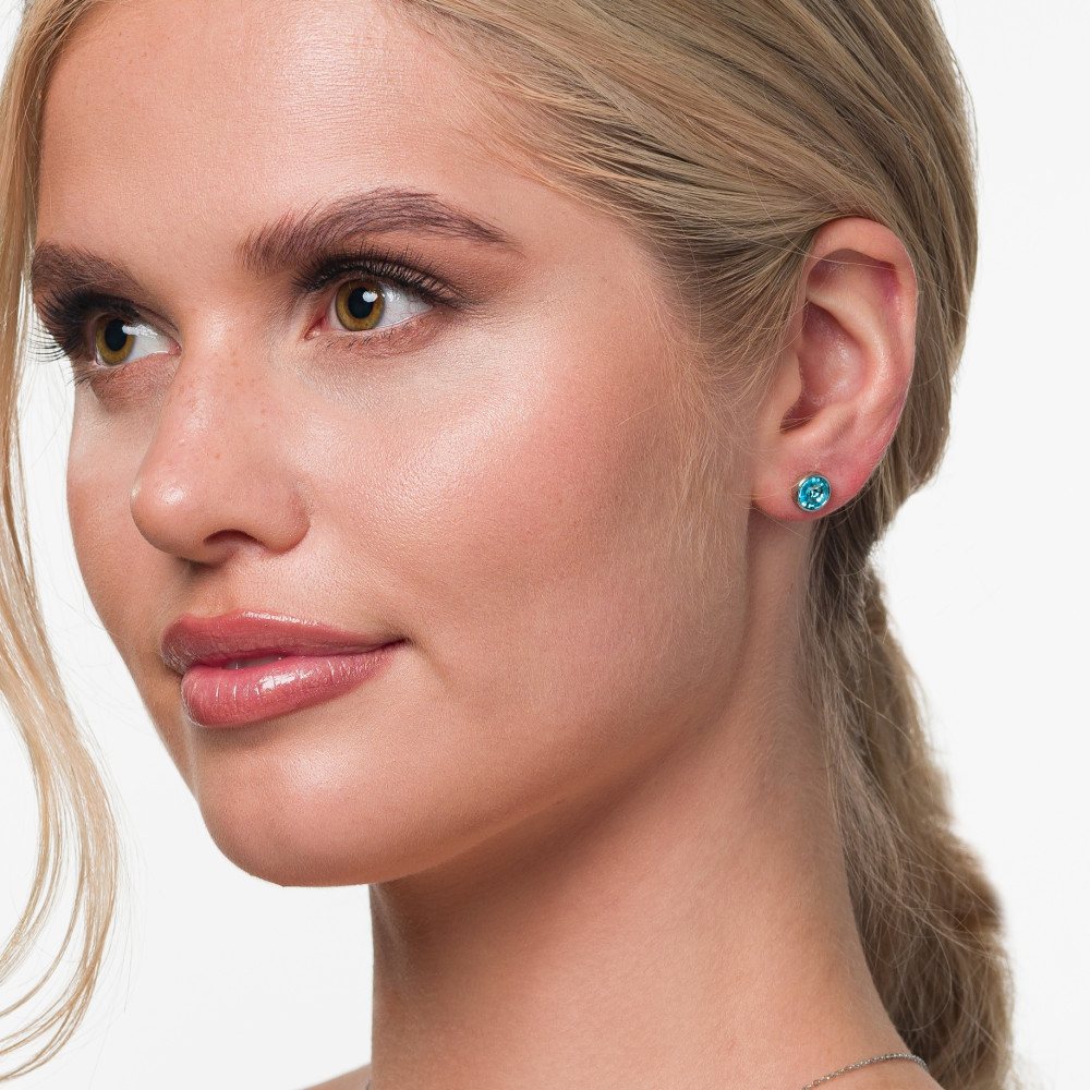 Ich konstrukcja ze stali nierdzewnej zapewnia wyjątkową odporność na zużycie i wilgoć, zapewniając trwały blask na co dzień. Niebieski kryształ Swarovski® o średnicy 6 mm jest starannie oprawiony w okrąg o średnicy 8 mm, co zapewnia idealną równowagę między dyskrecją a blaskiem.