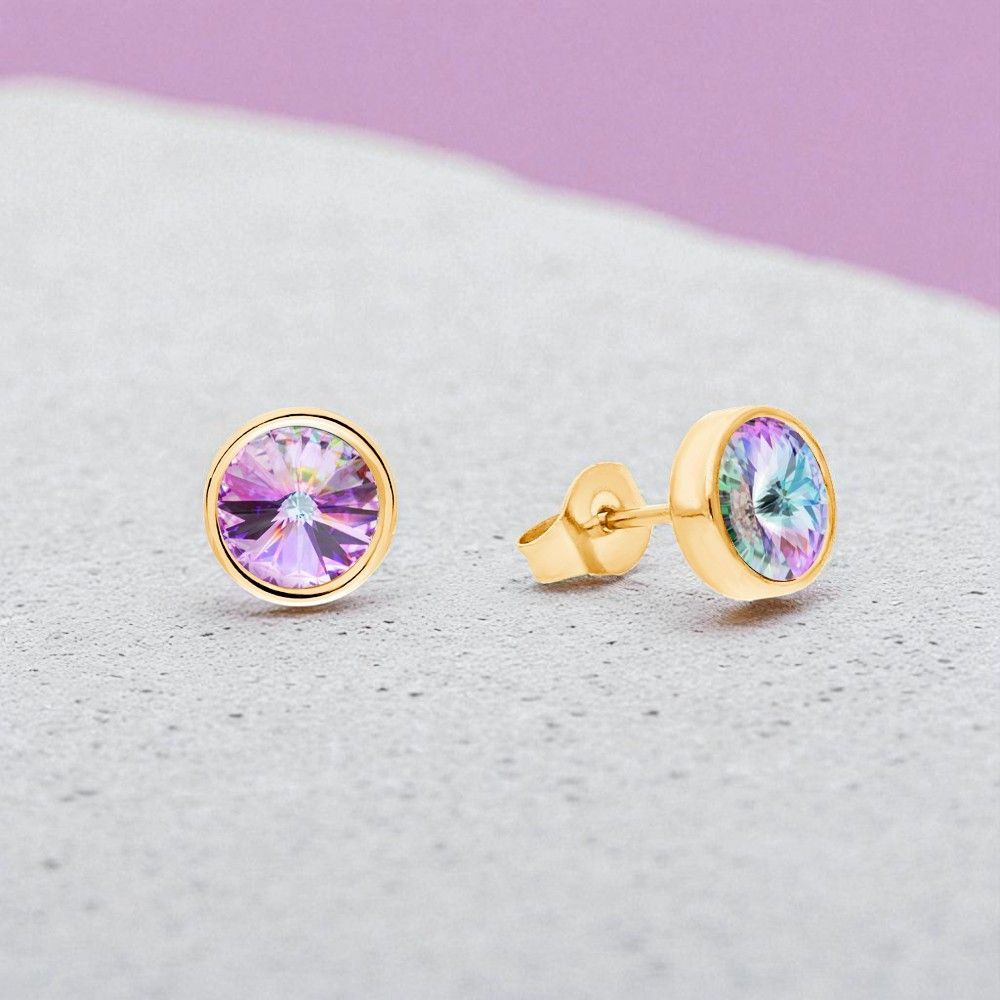 Pozłacane kolczyki SCINTILLE ze stali nierdzewnej z kryształem Swarovski® Vitrail Light
