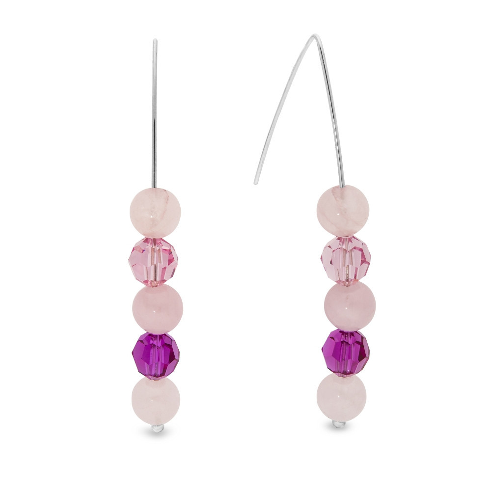 Kolczyki wykonane ze srebra próby 925, austriackich kryształów w kolorach Light Rose i Fuchsia oraz kamieni naturalnych - różowego kwarcu.