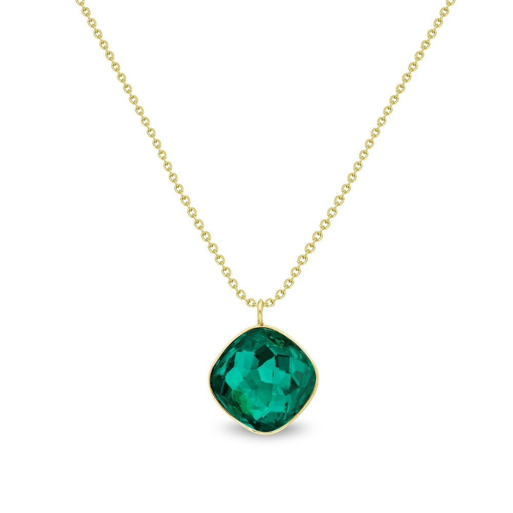 Naszyjnik wykonany z pozłacanego srebra próby 925 oraz austriackich kryształów w kolorze Emerald.Długość łańcuszka: 47 cm (42 cm + 5 cm przedłużka). Długość wisiorka: 3 cm. Wielkość kryształu: 1 cm.