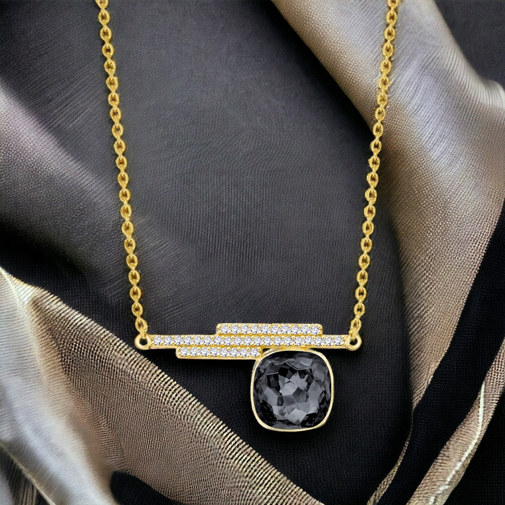 Połączenie kwadratowego kryształu i trzech linii cyrkonii tworzy harmonijną równowagę pomiędzy współczesnym designem i ponadczasowym przepychem. Niezależnie od tego, czy będzie noszony jako centralny punkt formalnego stroju, czy też jako dodatek do codziennego stroju, ten naszyjnik z pewnością pozostawi niezatarte wrażenie, czyniąc go cenionym dodatkiem do każdej kolekcji biżuterii.