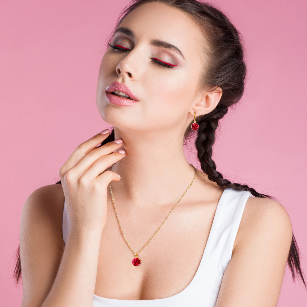 W biżuterii rubinowy odcień kryształu to wyraz luksusu, a także uczuć takich jak miłość i oddanie. Ten głęboki, bogaty kolor podkreśla kobiecą elegancję, dodając stylizacji odrobiny królewskiego szyku.
