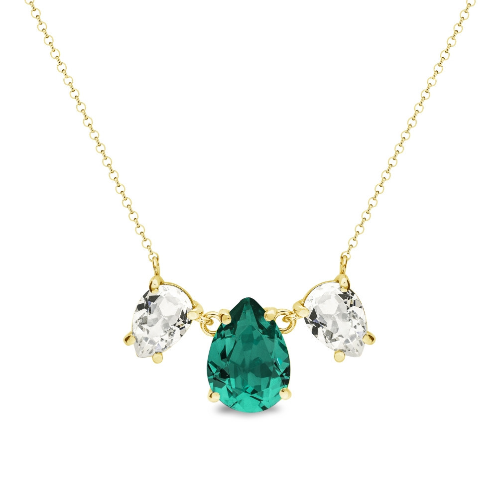 Naszyjnik wykonany z pozłacanego srebra próby 925 oraz austriackich kryształów w kolorach Emerald i Crystal.Długość naszyjnika: 47 cm (42 cm + 5 cm przedłużka). Wielkość kryształów: 1,4 cm i 1 cm.