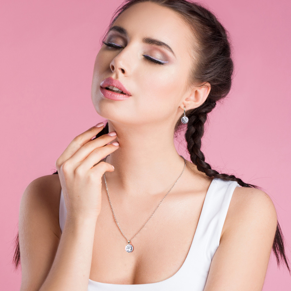 Naszyjnik wykonano z najwyższej jakości srebra, które zachwyca swoim delikatnym połyskiem i trwałością. W centrum uwagi znajduje się okrągły, biały kryształ o średnicy 10 mm, stworzony z precyzyjnie szlifowanego austriackiego kryształu, który doskonale odbija światło, tworząc olśniewający efekt. Przywieszka, o długości 16 mm, została zaprojektowana tak, by idealnie eksponować piękno kryształu, a jednocześnie zapewnić subtelność całej kompozycji.