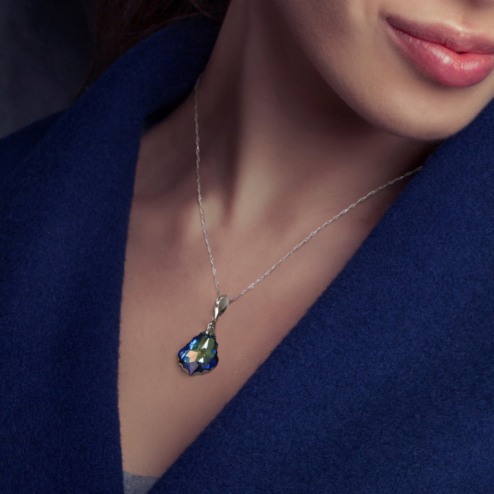 Naszyjnik CHANDELIER zachwyca dekoracyjną formą oraz intensywnym, niebieskim blaskiem. Starannie zaprojektowana zawieszka, inspirowana formą żyrandola, została ozdobiona niebieskimi kryształami Swarovski®, które efektownie odbijają światło i nadają biżuterii głębi.