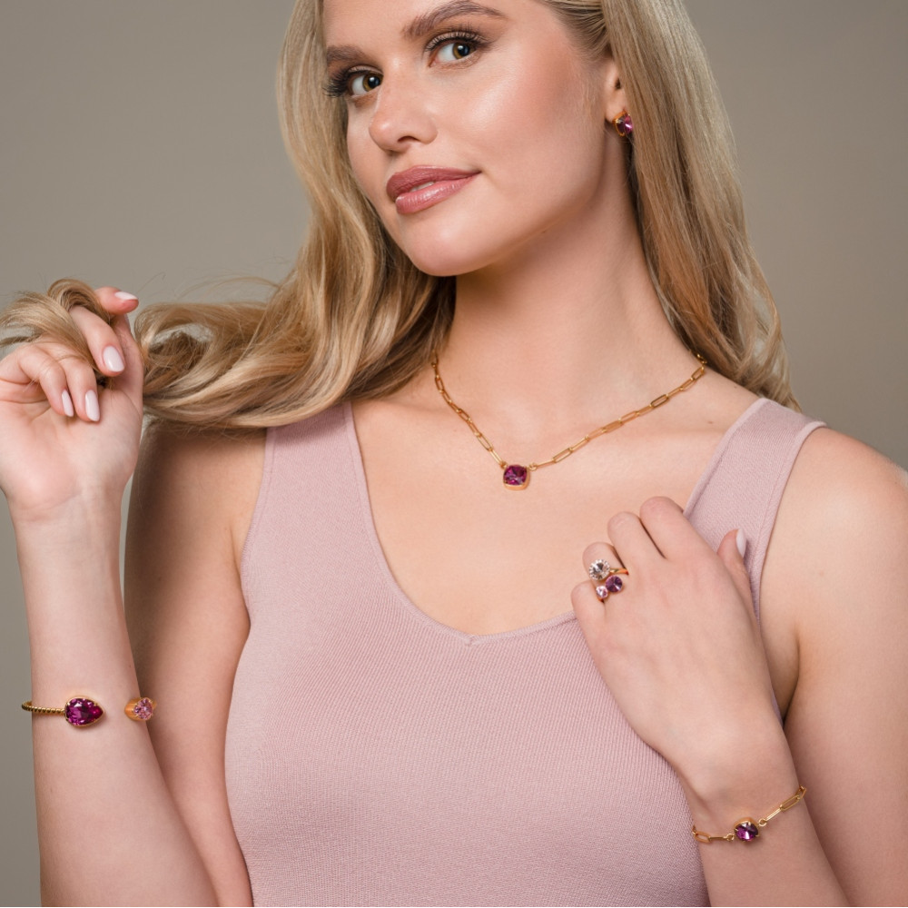 Bransoletka Illusion ze stali platerowanej złotem z różowymi kryształami |SPARK