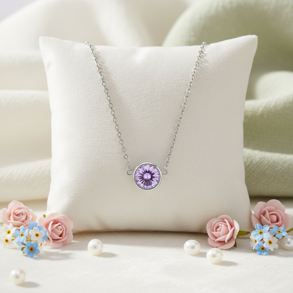Naszyjnik SCINTILLE uosabia subtelną elegancję i urzekające światło. Jego fioletowy kryształ Swarovski® roztacza delikatne refleksy, przywołując na myśl kreatywność, kobiecość i tajemniczość. Ta biżuteria o minimalistycznym designie podkreśla szyję nutą nowoczesności i wyrafinowania, idealna zarówno na co dzień, jak i na eleganckie wieczorne wyjście.