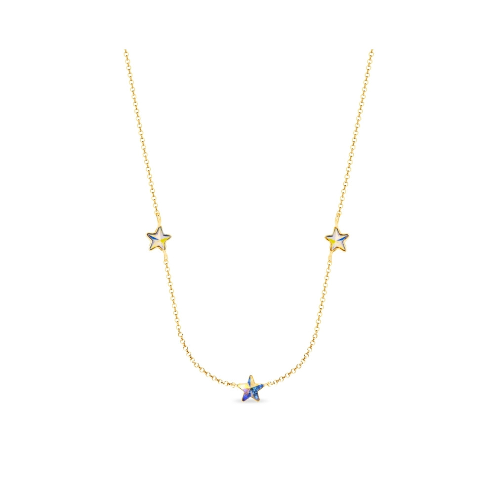 Naszyjnik wykonany z pozłacanego srebra próby 925 oraz ekskluzywnych kryształów crystals w kolorze Aurora Borealis.