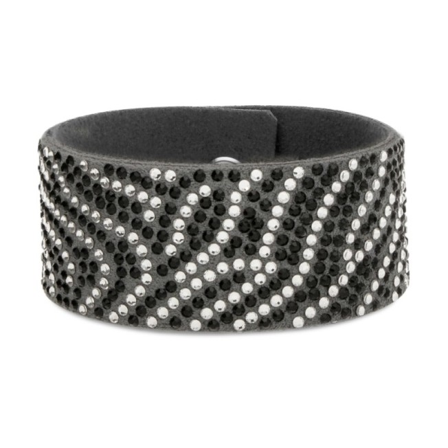 Bransoletka wykonana z szarej Alcantary® oraz ekskluzywnych kryształów crystals w kolorze Crystal i Jet.